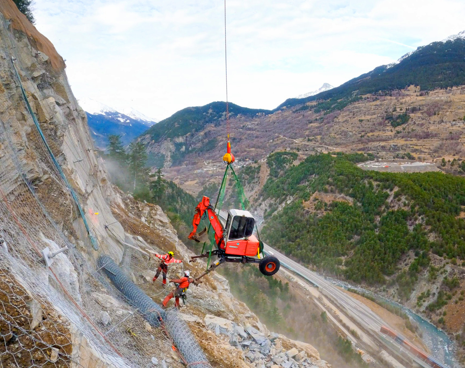 Sécurisation de falaises peut demander le transport de machine lourde.